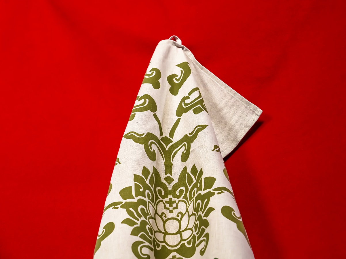 close Bakåt arrow_back Framåt arrow_forward produkt Kökshandduk med detalj från fana Vackert mönster med lotusblomma, som bygger på en kinesisk sidendamast från 1600-talet. 139 kronor